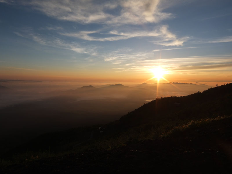 歩き始めるとすぐに日の出になる。