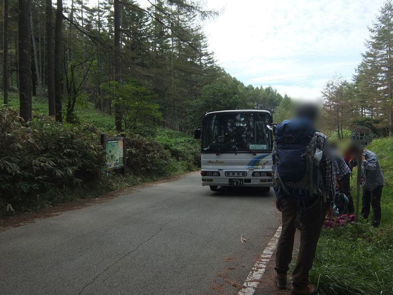上日川峠の1つ前のバス停(小屋平・石丸峠入口)で降りる。