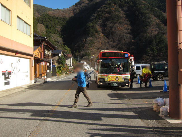 バス停まで戻る。はるか遠くには雲取山が見える。
