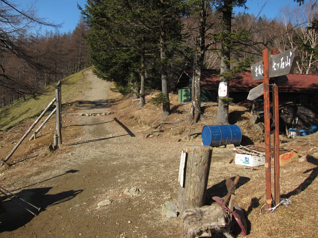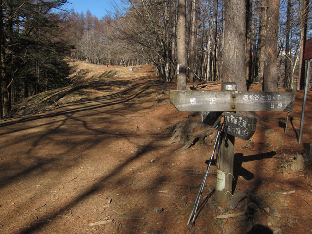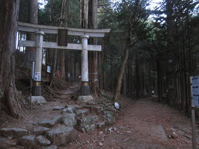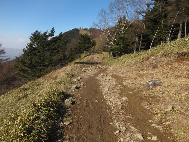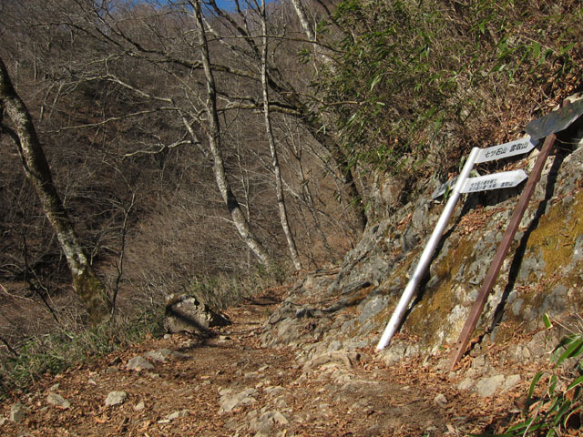 雲取山頂からの下りには一部凍結があるが、アイゼンは不要。