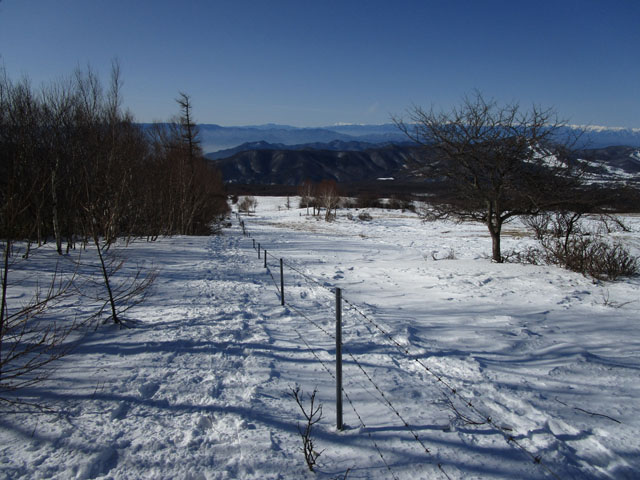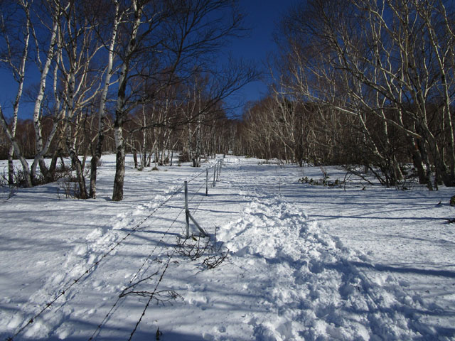 スノーシューの連中は牧場を突っ切っていくトレースになっている。