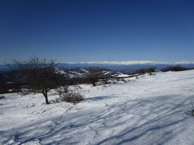 根子岳と、奥には妙高と北アルプス北部が写っている。