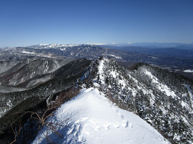 リッジに雪庇がついていて危なさそう。積雪期は通る人はまずいない。
