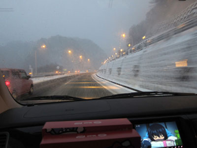 スタッドレスタイヤで走行には全く不安はないが、慎重に。