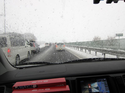 途中、チェーン規制渋滞で1分(中央道では30分ロスだったそう)、