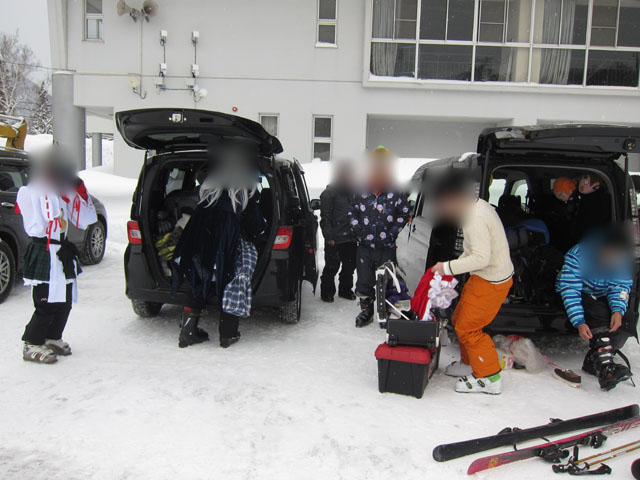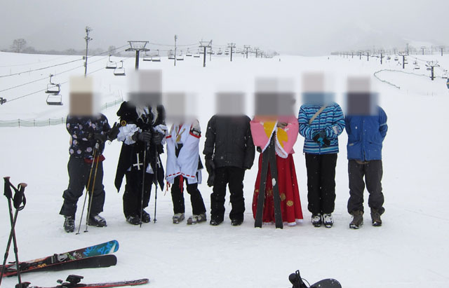 コスプレスキー滑走の準備をしてゲレンデへ。