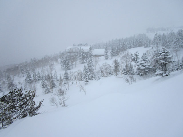 (ボードは晴天よりも降雪中のほうが山滑走を楽しめるため)