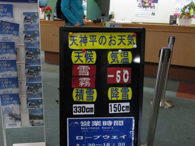 天神平は今朝の時点で−5℃、積雪330cmとのこと。