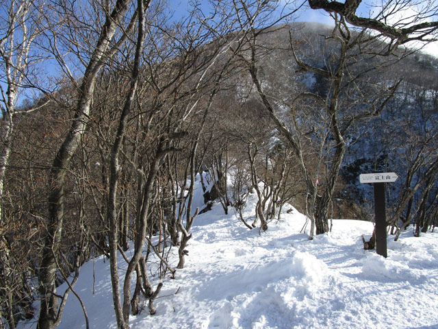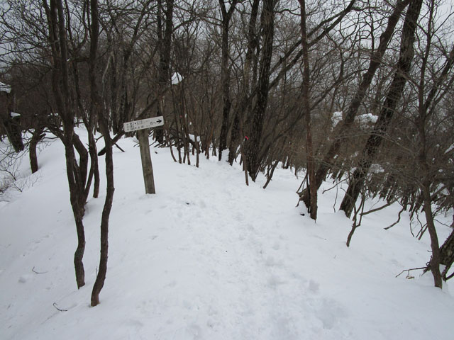写真は主尾根から右に折れ鳥居峠に向かう尾根に乗る場所だが、
