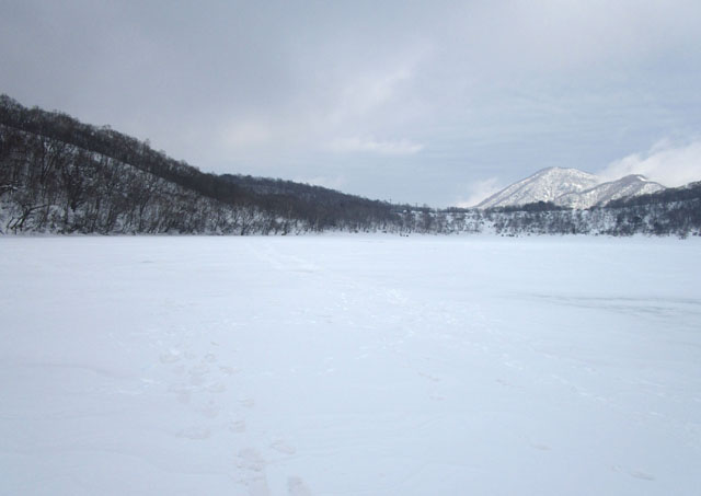 凍結しているので沼の上を歩けるが、