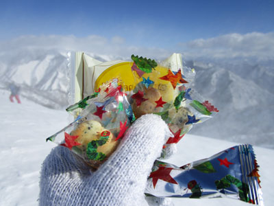 オキを見るがホイップクリーム状に雪がついていて美しい。