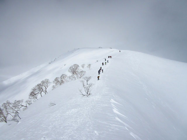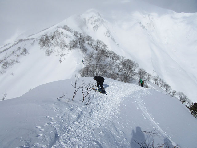 BCでは、天神尾根から登り西黒沢に滑降する人が多いが、