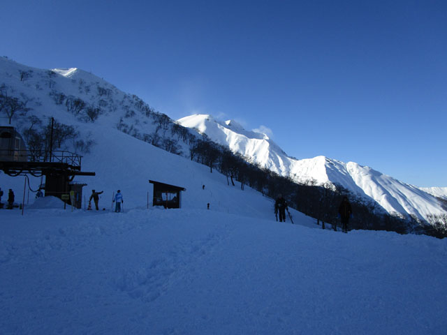 前日はロープウェイが1日運休したため激しいラッセルが期待できそう。
