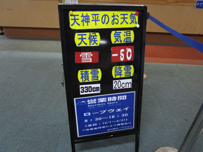 天神平は今朝の時点で−5℃、積雪330cmとのこと。