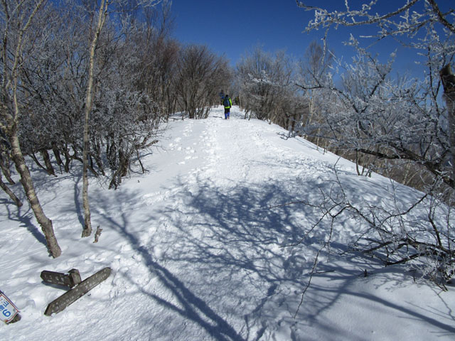 雪がかなり硬くなっててアイゼン無しでは歯がたたない。