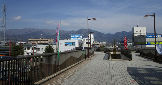 渋沢駅の北口からは塔ノ岳〜大山の稜線が見える。