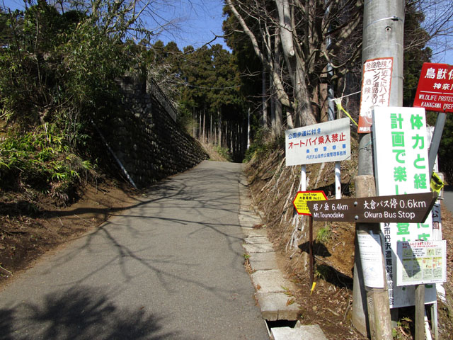 渋沢駅からバスで大倉(標高290m)まで。