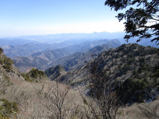 武甲山〜大持山の稜線の先には、東京スカイツリーが見える。