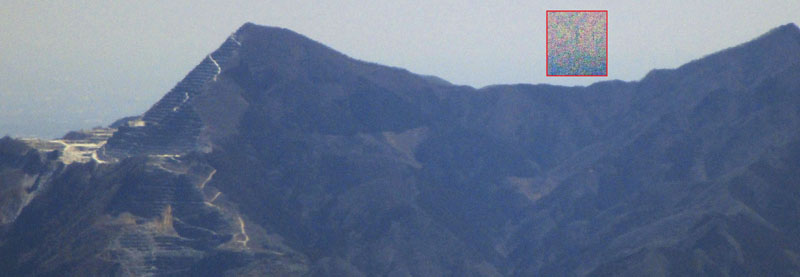 赤枠部分のコントラストを強調すると、赤枠のちょうど中央に見えている。