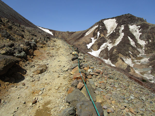このためロープウェイに乗らず、峰の茶屋避難小屋方面に歩く。