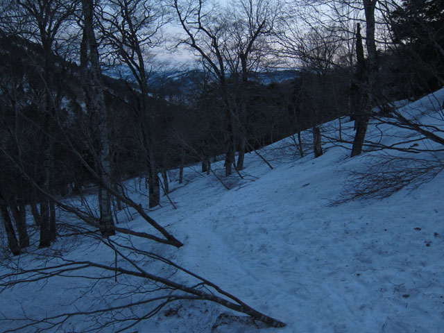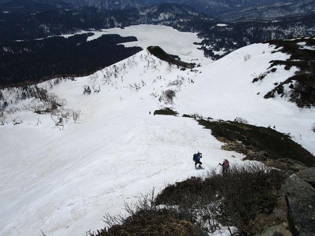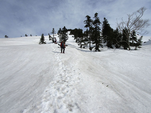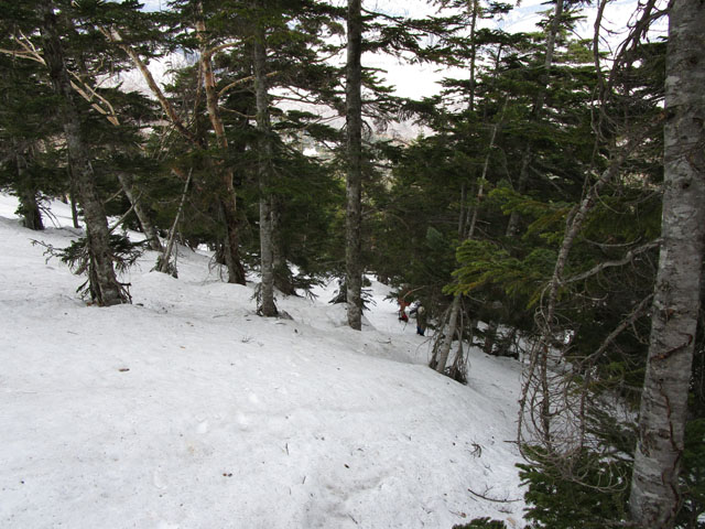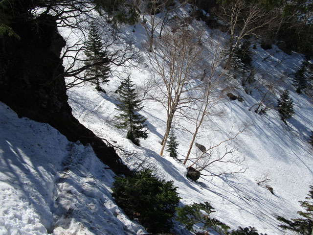 雪がかなりあり急勾配でなかなか怖い。ここはピッケル必携だ。