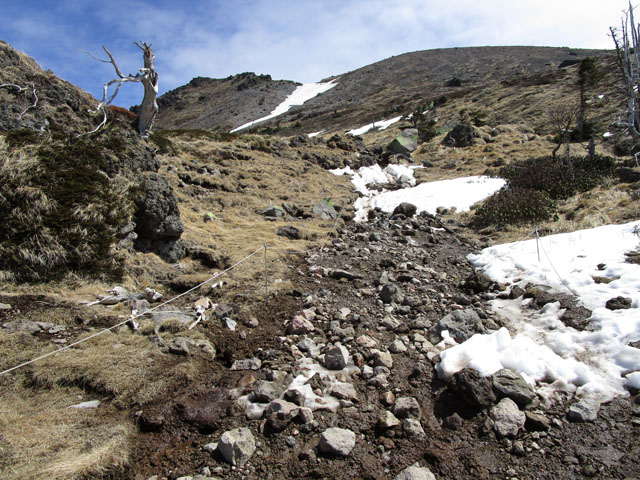 奥白根山の山頂へは、ロープウェイからの西面のルート、