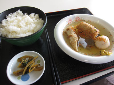 鳩待山荘横の食堂でメシにする。(おでん定食650円)