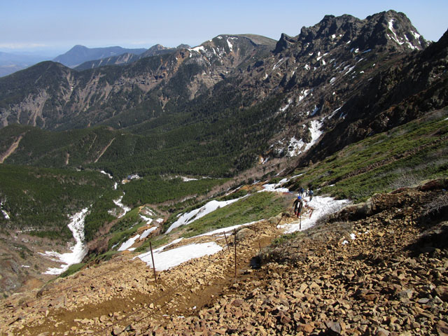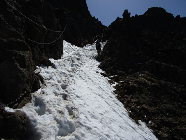 一部雪渓の横断がある。すべると結構下まで落ちそう。要注意。