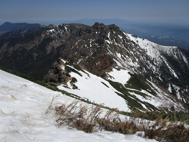 八ヶ岳エコーラインからは登ってきた硫黄岳〜赤岳が見える。