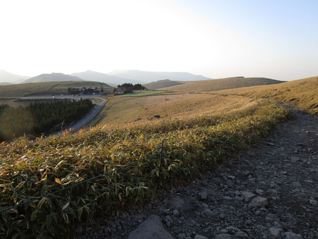 山頂から駐車場まではグリーンロープでがっちり道になっていて、