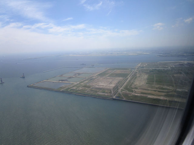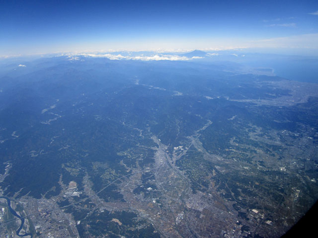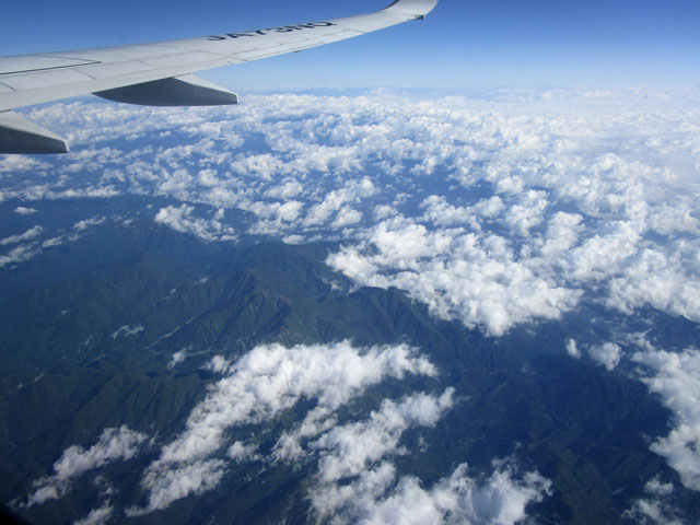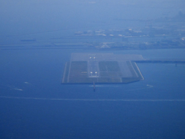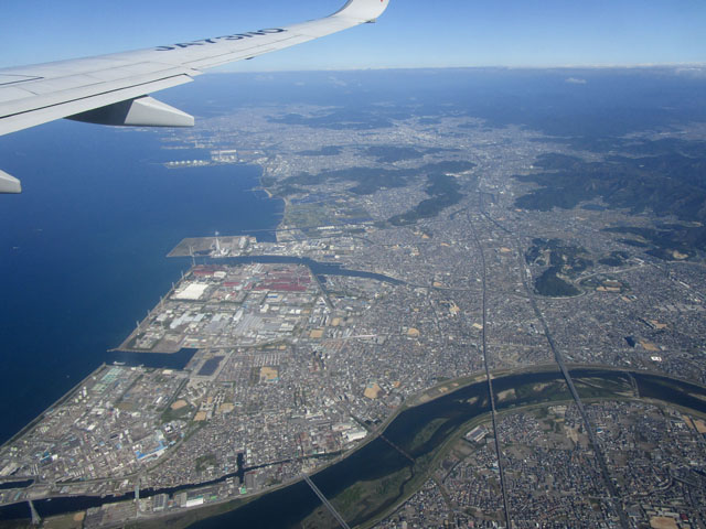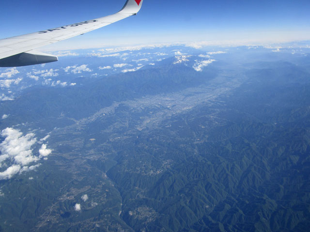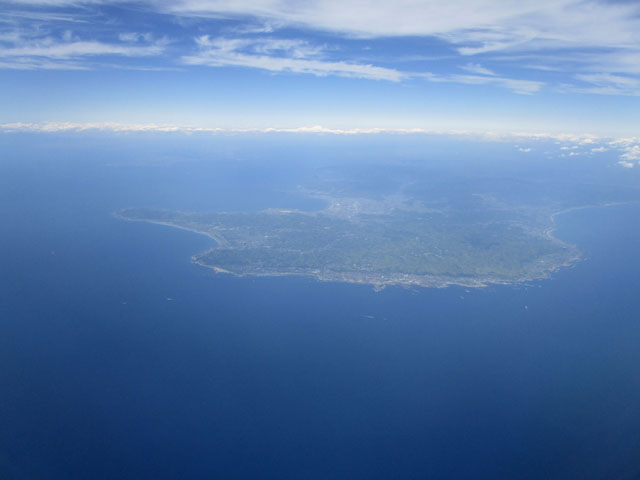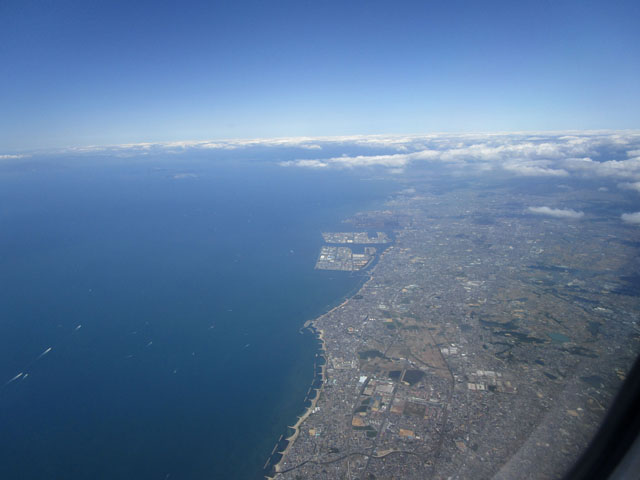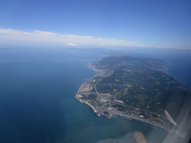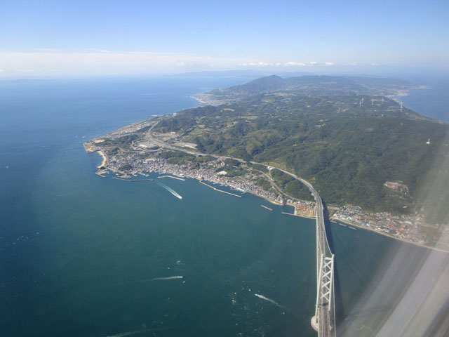 着陸時と同様に明石海峡大橋を超えるが、高度は倍の1800m程度。