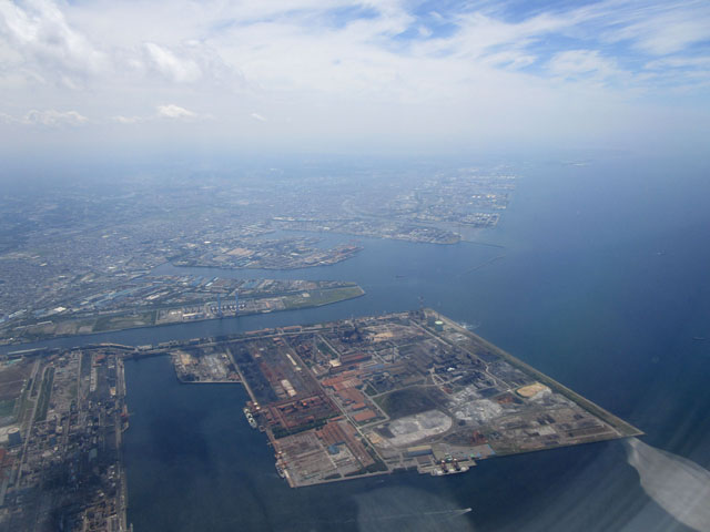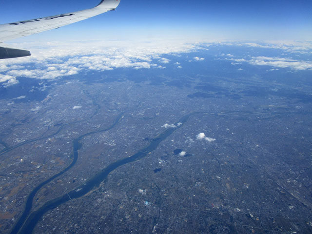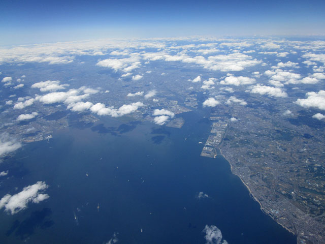 南風好天時モードでは、東京湾上空を一直線に真西に飛ぶ。