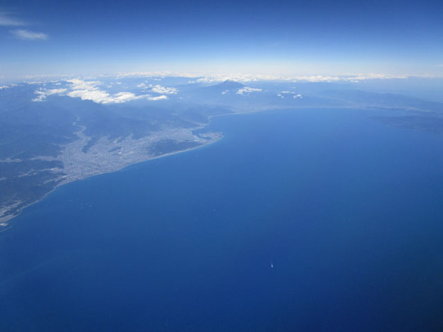 東京湾上空で旋回を繰り返して上昇、横浜を通過して西へ。