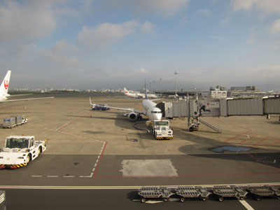 羽田からの便がやってきた。これが折り返しで搭乗便になる。