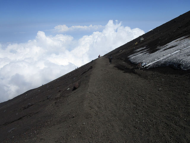 富士宮口から下を見ると、こちらも登山道上に雪はなさそうだ。