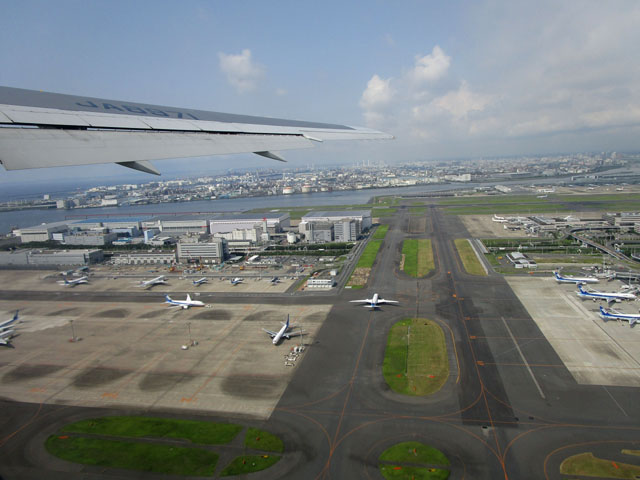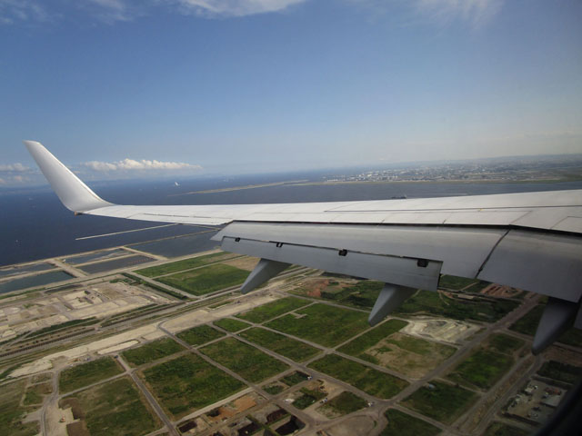 滑走路の手前で40度ほど左旋回して着陸するルートだ。