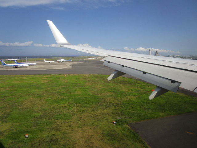 久々に第2ターミナルからANA機に乗る。B767-300。