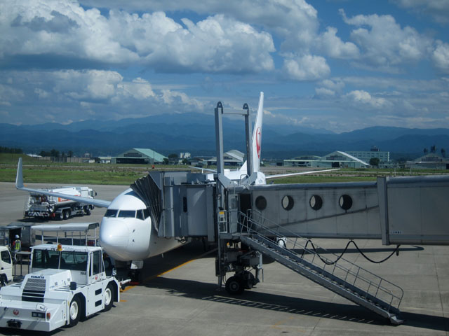 これから乗るB737-800が停まっている。奥は白山だろう。