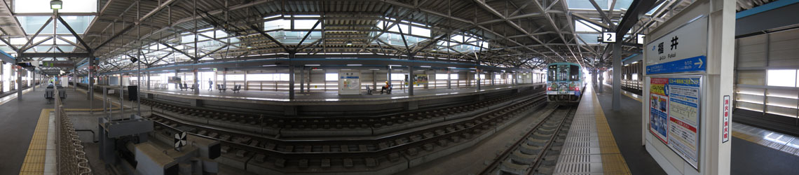 駅舎は東尋坊の柱状節理をイメージしたものだとか。