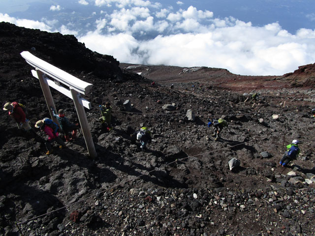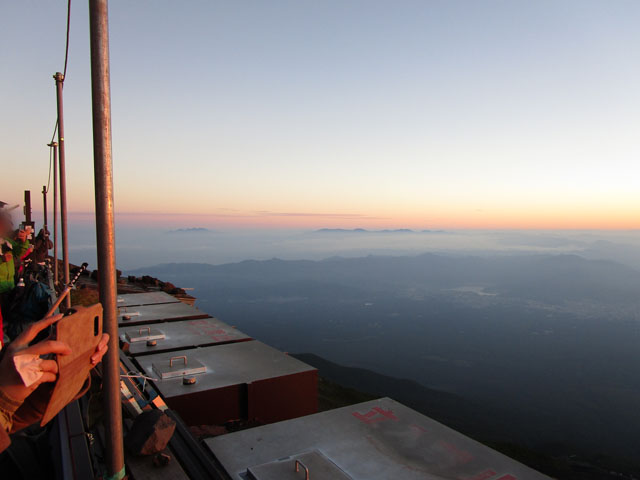 暗い中を登っていくと7合目付近でだんだん明るくなってくる。