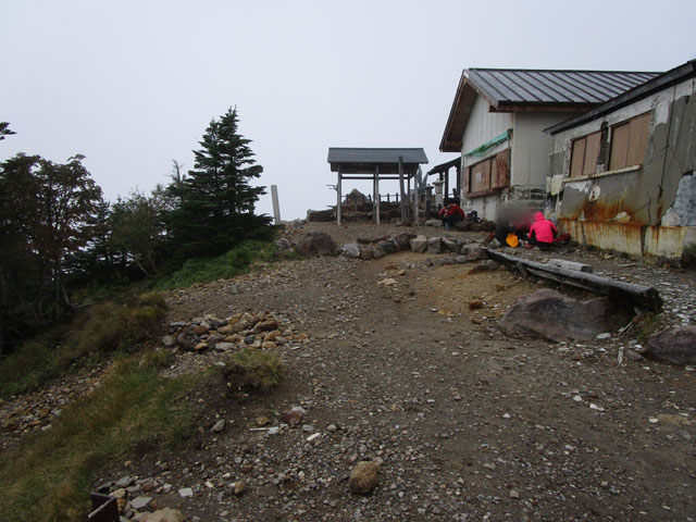 ガスガスなので50分ほどの休憩で下山にかかる。
