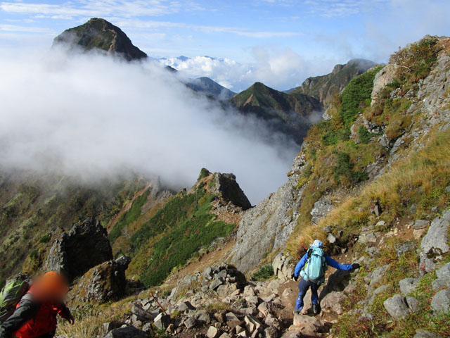 横岳の岩場を超えていく。