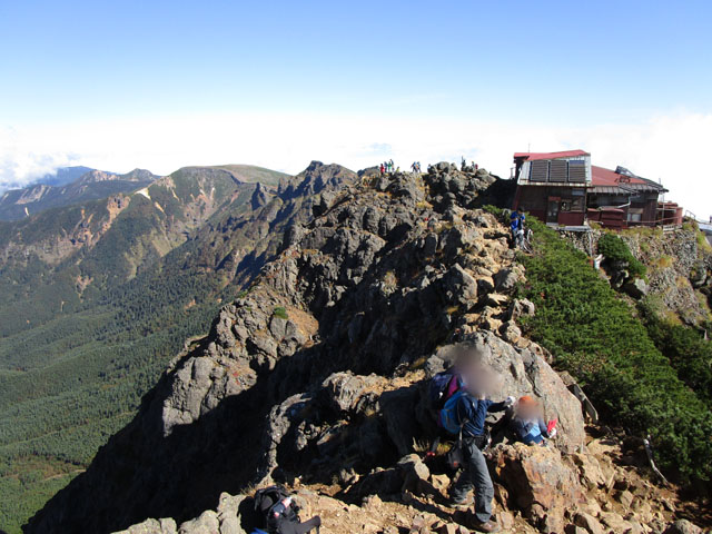 赤岳頂上山荘は営業中、人が多い。