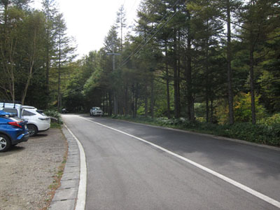 このあたりは別荘地内で私道のため、交通規制標識はない。