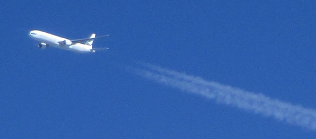 キャセイパシフィックB777香港行きとすれ違う。