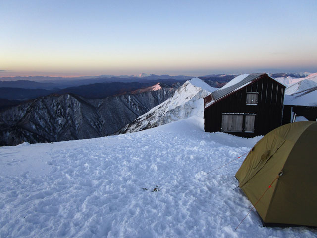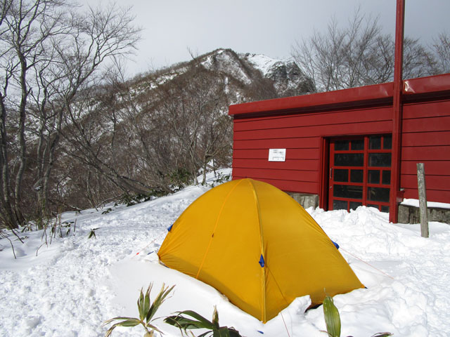 写真は小屋裏でテント泊していたエキスパートパーティ。