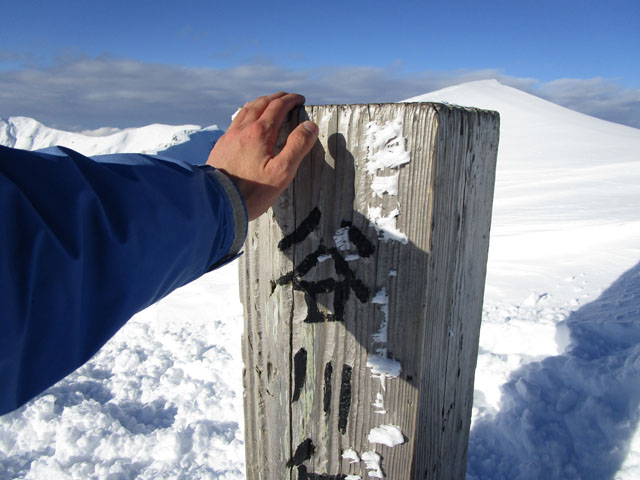 三角点にタッチできないので山頂標識にタッチ。