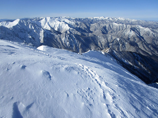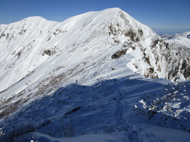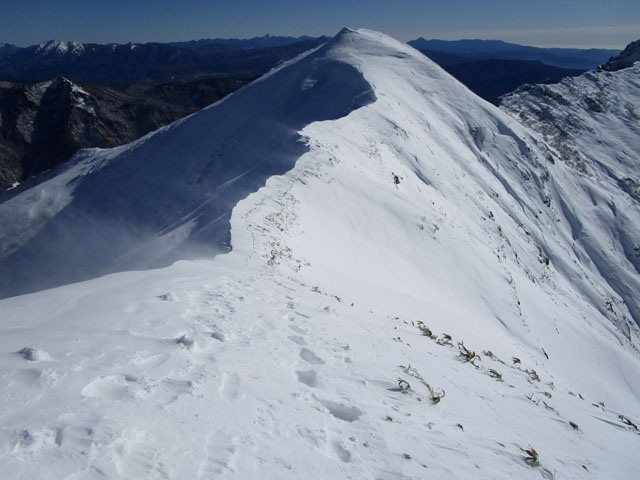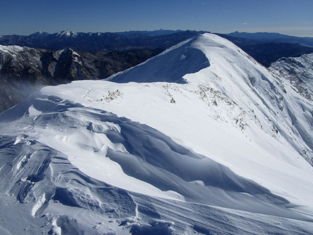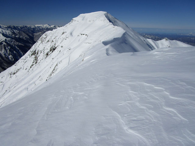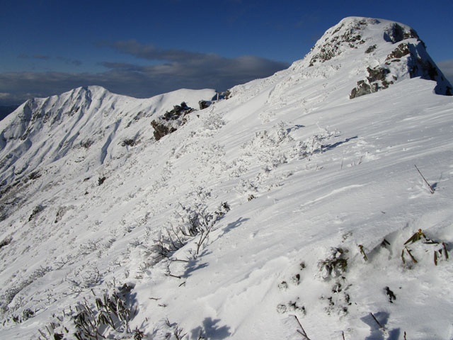 ただし尾根上は雪庇にも注意。
