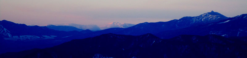 浅間山と四阿山の間には御嶽山が見える。
