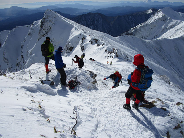 茂倉岳は、ピッケル+アイゼン+ヘルメット等の完全装備が必要だ。